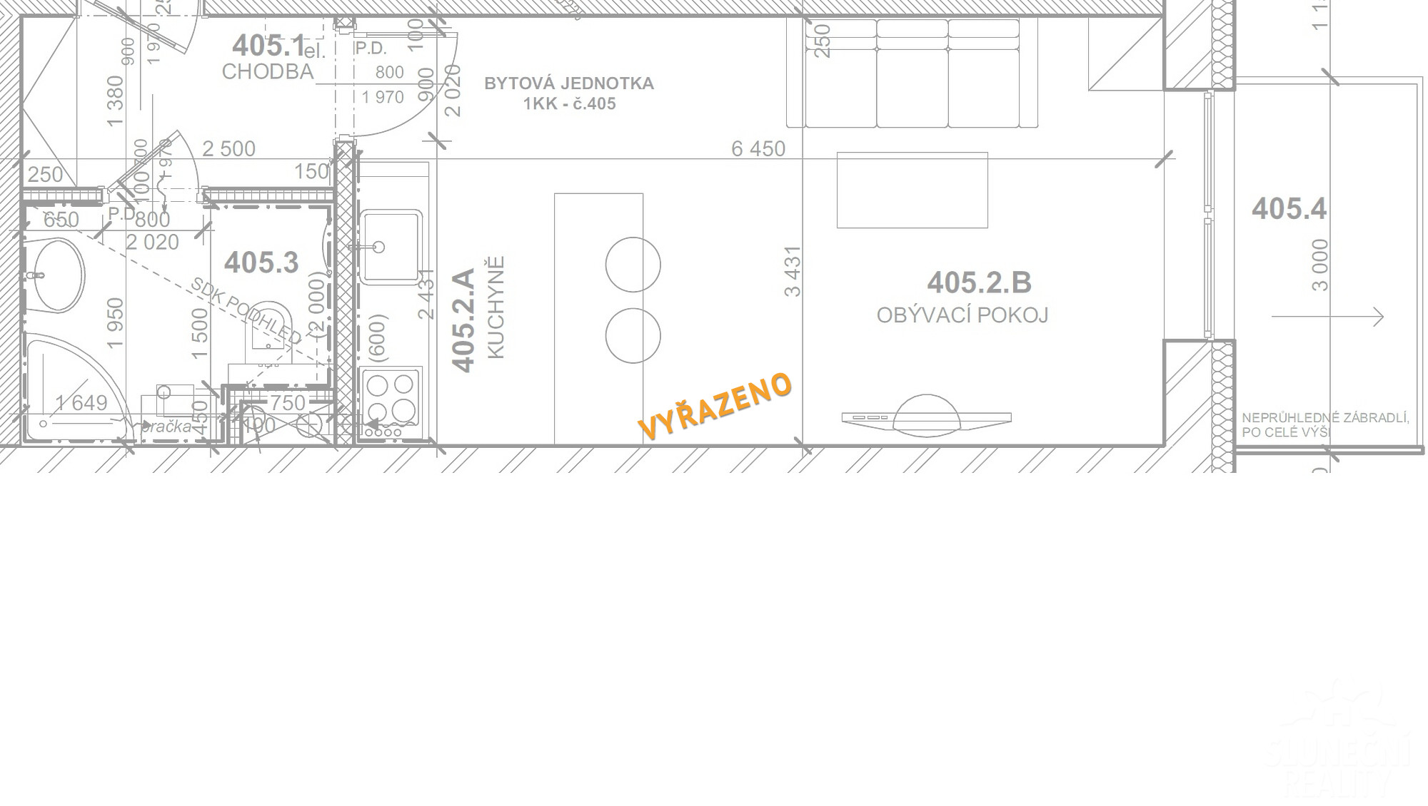 Naše společnost Vám nabízí k pronájmu nadstandardní byt 1+kk o rozloze 30 m² + terasa 5,5 m² a vyhrazeným parkovacím stáním v atraktivní lokalitě Uherské Hradiště – Sadová. Byt se nachází ve 3. nadzemním podlaží novostavby s výtahem a je vybaven moderní kuchyňskou linkou včetně spotřebičů – lednicí s mrazničkou, myčkou, troubou, indukční varnou deskou, digestoří a mikrovlnnou troubou. Součástí vybavení jsou také vestavné skříně a venkovní žaluzie s dálkovým ovládáním. K bytu náleží terasa, vlastní sklep (4 m²) a vyhrazené parkovací stání přímo před domem. Uvedená cena nájmu je bez energií, které činí přibližně 2.000 Kč měsíčně. Díky energetické náročnosti třídy ,,A,, budou náklady na energie velmi nízké. Díky solárním panelům, které pomáhají s ohřevem teplé vody a fotovoltaické elektrárně, která bude na bytový dům instalována na přelomu roku. Byt bude připraven k nastěhování v druhé polovině listopadu 2025 a je ideální pro jednu osobu. Vratná kauce činí 20.000 Kč a provize realitní kanceláře je ve výši nájmu + DPH. V případě zájmu o další informace nás neváhejte kontaktovat telefonicky nebo e-mailem. Prohlídky jsou možné po předchozí domluvě.